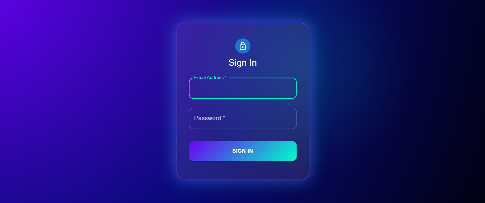 A sleek, responsive login interface built with React.js and Material UI, showcasing modern glassmorphism design, interactive UI, and glowing effects.